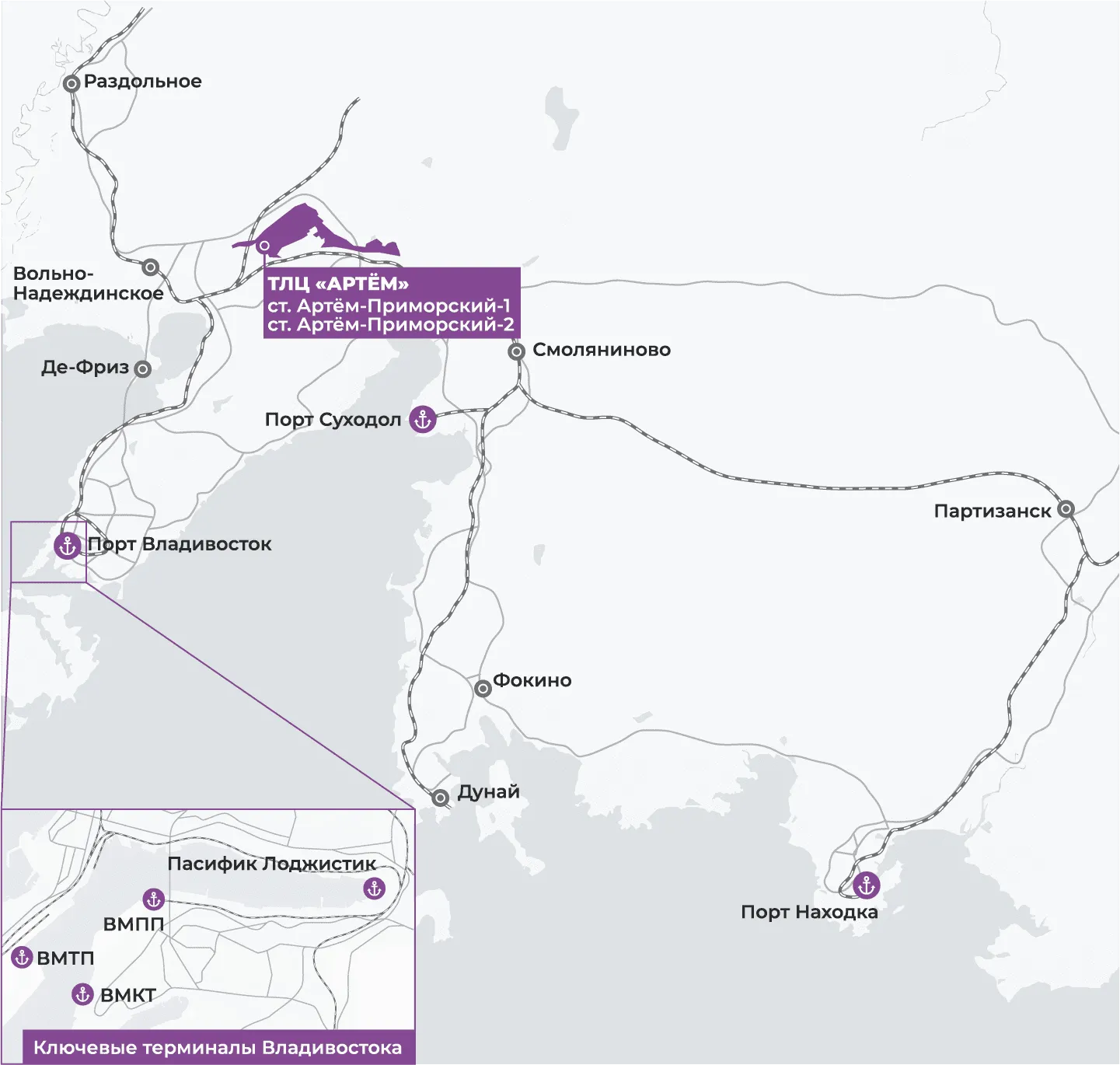 ТЛЦ «Артем» — это «входные ворота» для грузов, следующих в Московский регион с восточного направления: с Дальнего Востока, из Сибири и стран Тихоокеанского региона.